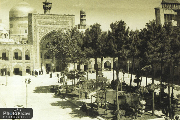 نمای موزه قديم آستان قدس رضوی و صحن قديمی امام خمينی(ره) حرم مطهر امام رضا(ع) در سال 1348 شمسی