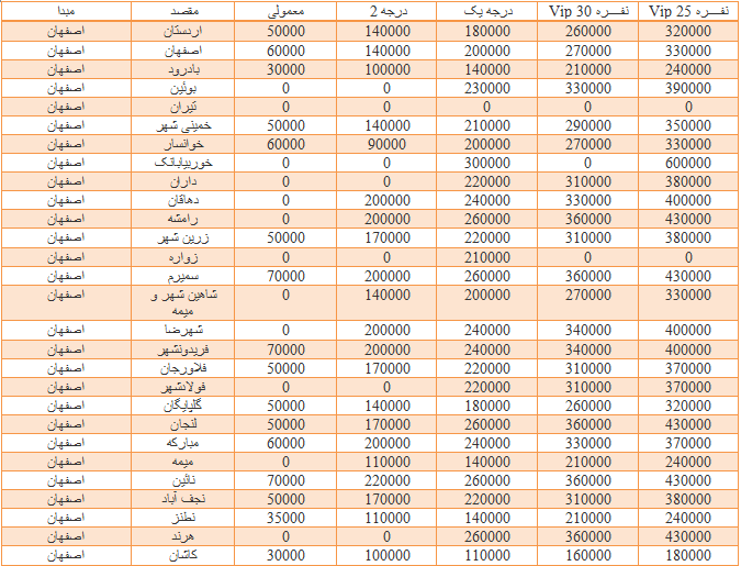 به گزارش خبرنگار نبض بازار گروه اقتصادی باشگاه خبرنگاران جوان قیمت انواع بلیت اتوبوس از مسیر های مختلف در کشور به شرح زیر است: انتهای پیام/
