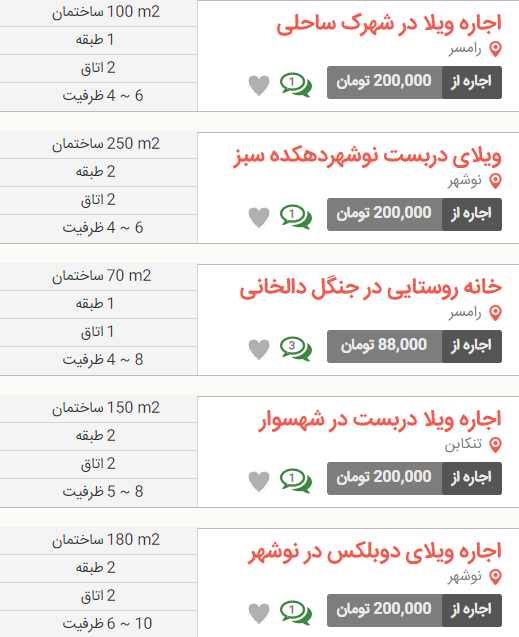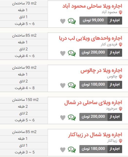 به گزارش خبرنگار نبض بازار گروه اقتصادی باشگاه خبرنگاران جوان، هزینه اجاره ویلا در برخی مناطق شمال کشور به شرح زیر است: انتهای پیام/