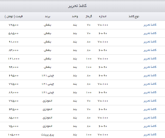 به گزارش خبرنگار نبض بازار گروه اقتصادی باشگاه خبرنگاران جوان، قیمت انواع کاغذ تحریر در بازار به شرح زیر است: انتهای پیام/ آخرین قیمت کاغذ تحریر در بازار