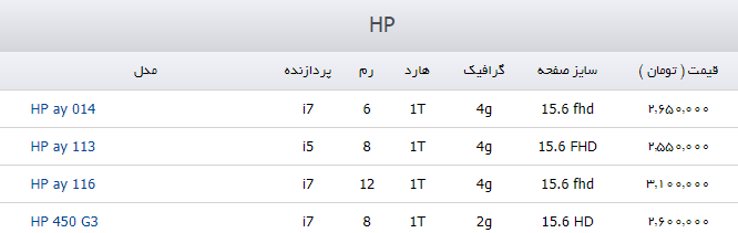 به گزارش خبرنگار نبض بازار گروه اقتصادی باشگاه خبرنگاران جوان، قیمت انواع لپ تاپ های hp در بازار به شرح زیر است: انتهای پیام/ آخرین قیمت لپ تاپ در بازار